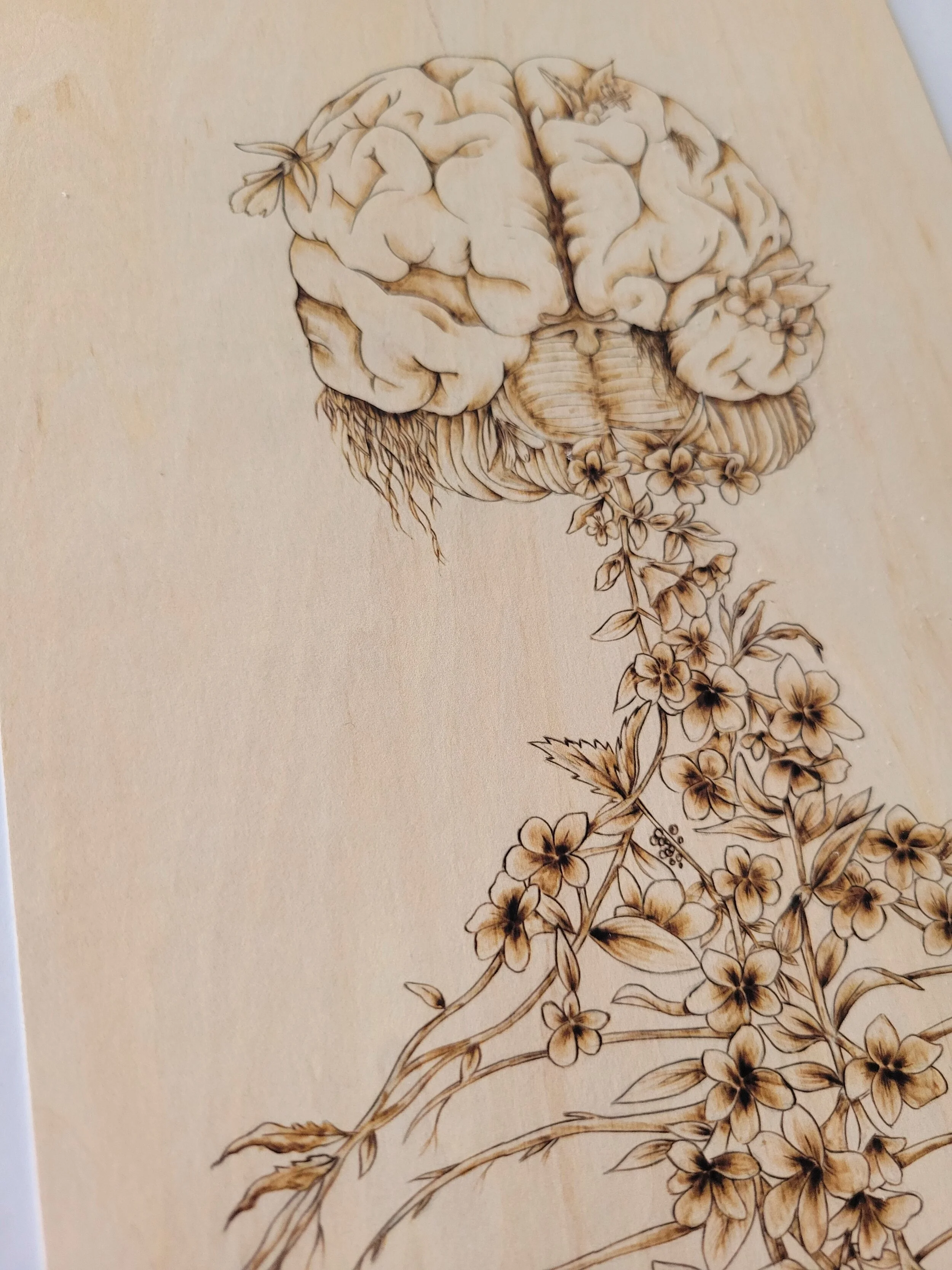 A simple, yet impactful print featuring anatomically correct lungs filled with florals. This piece isn’t based on any specific disorder, but rather the beauty that is being able to take a breath. Created shortly after my asthma was labeled as “under control” after 2+ years of struggling to manage it.