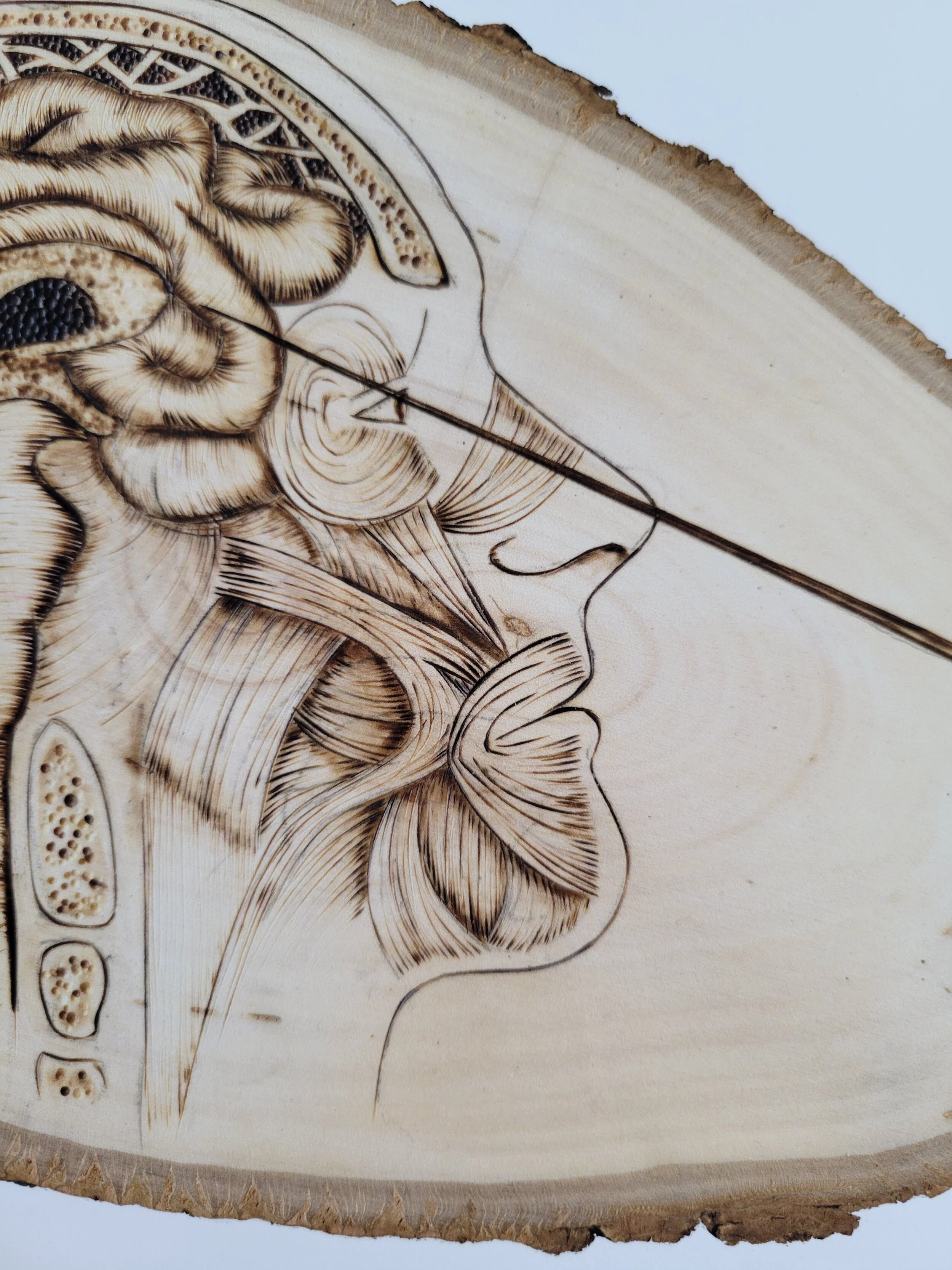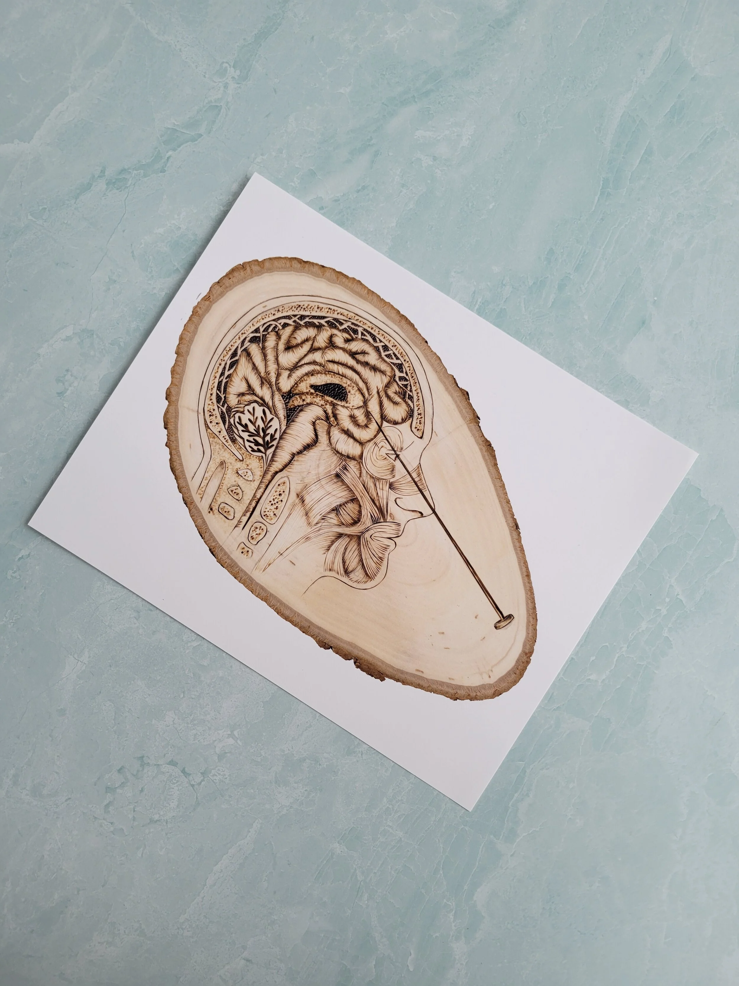 A very proud uterus. Rendered in colored pencil on a pine wood plaque